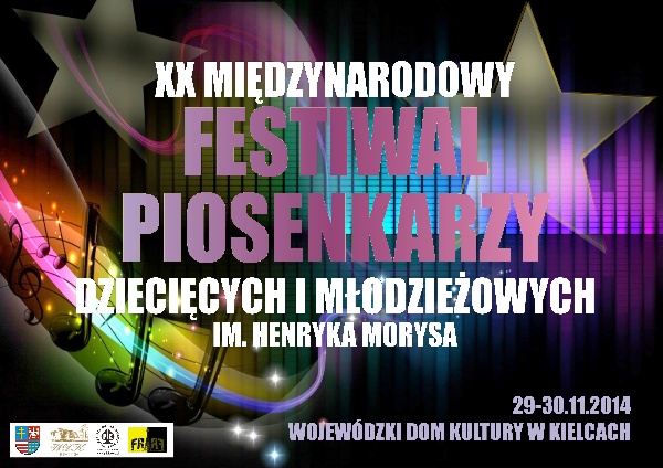 Regulamin XX Międzynarodowego Festiwalu Piosenkarzy Dziecięcych i Młodzieżowych im. Henryka Morysa 29–30 listopada 2014 r. Festiwal dedykowany jest pamięci Henryka Morysa, znanego kieleckiego muzyka, kompozytora i pedagoga, który poświęcił dzieciom i młodzieży ponad czterdzieści lat pracy instruktorskiej w Wojewódzkim….